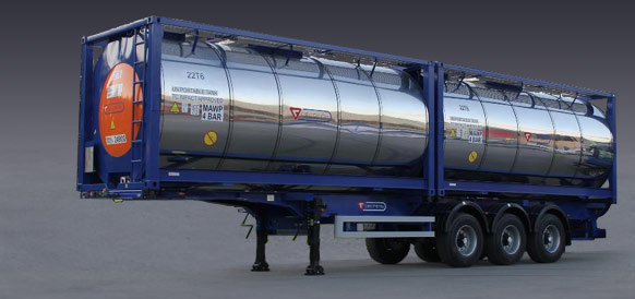 Использование танк - контейнеров безопасно, экономически выгодно, так как уменьшаются затраты на транспортировку, снижается риск повреждения тары и пролива продукта. Танк - контейнеры могут храниться как полными, так и пустыми. Служат 20-30 лет и более. Перевозка контейнеров осуществляется на железнодорожных платформах, на палубах и в трюмах судов, автомобильным транспортом. Транспортирование по железной дороге осуществляется как на специализированных, так и на обычных платформах. Морские перевозки контейнеров осуществляются на палубах судов как обычного типа, так и на палубах и в контейнерных ячейках специализированных судов-контейнеровозов. При перевозке контейнеров по шоссейным дорогам общего пользования применяются полуприцепы-контейнеровозы, оснащенные приспособлениями для крепления контейнеров. Штабелирование контейнеров производится на специальных площадках и на палубах судов. При штабелировании контейнеры устанавливаются фитингами на фитинги со смещением в продольном направлении не более 38 мм, в поперечном - не более 25 мм. Масса верхних контейнеров не должна превышать 192000 кг.